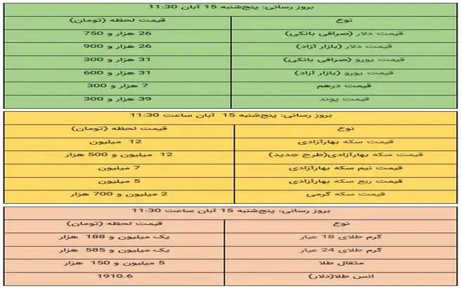 قیمت طلا سکه ارز و دلار امروز ۱۵ آبان ۹۹ / کاهش شدید قیمت سکه دو روز پس از انتخابات آمریکا